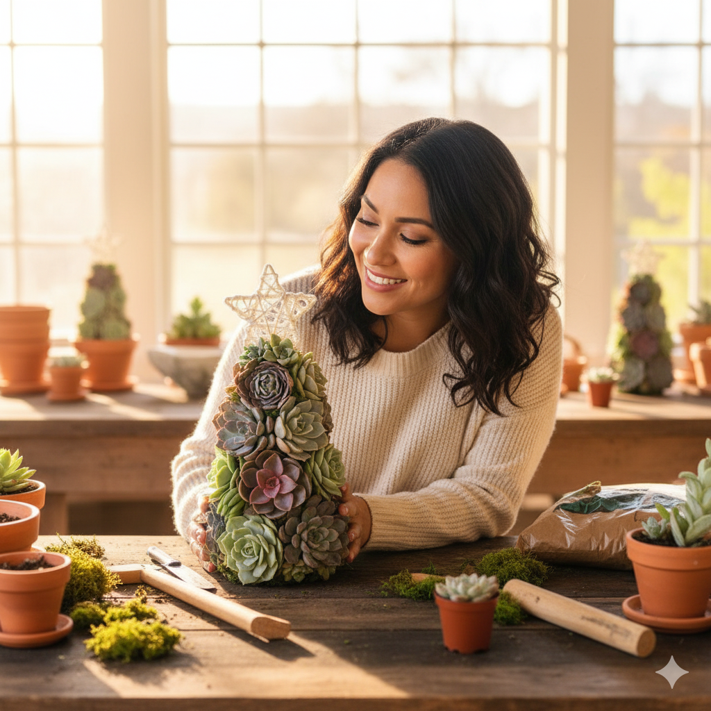 Te invitamos a un taller único donde aprenderás a diseñar un Pino de Navidad hecho completamente con suculentas vivas, una pieza decorativa moderna, sustentable y perfecta para celebrar la temporada con estilo.