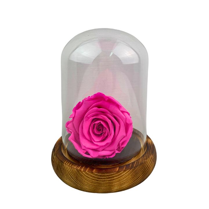 Rosa natural eterna preservada fucsia, duración 5 años, lo mejor es que no necesita riego ni mantención, el único cuidado es no exponer al sol, la rosa preservada incluye cúpula. de vidrio. La cúpula no esta sellada, es la rosa que tiene un sistema especial de preservación para que disfrutes de su belleza por años.